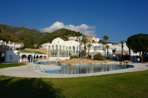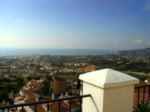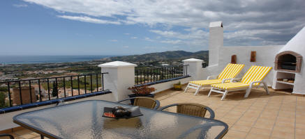 Der wahrscheinlich schönste 180-Grad-Ausblick von der Terrasse über das malerische Städtchen Nerja hinweg, in die Ausläufer der Berge bis in's Meer hinaus.